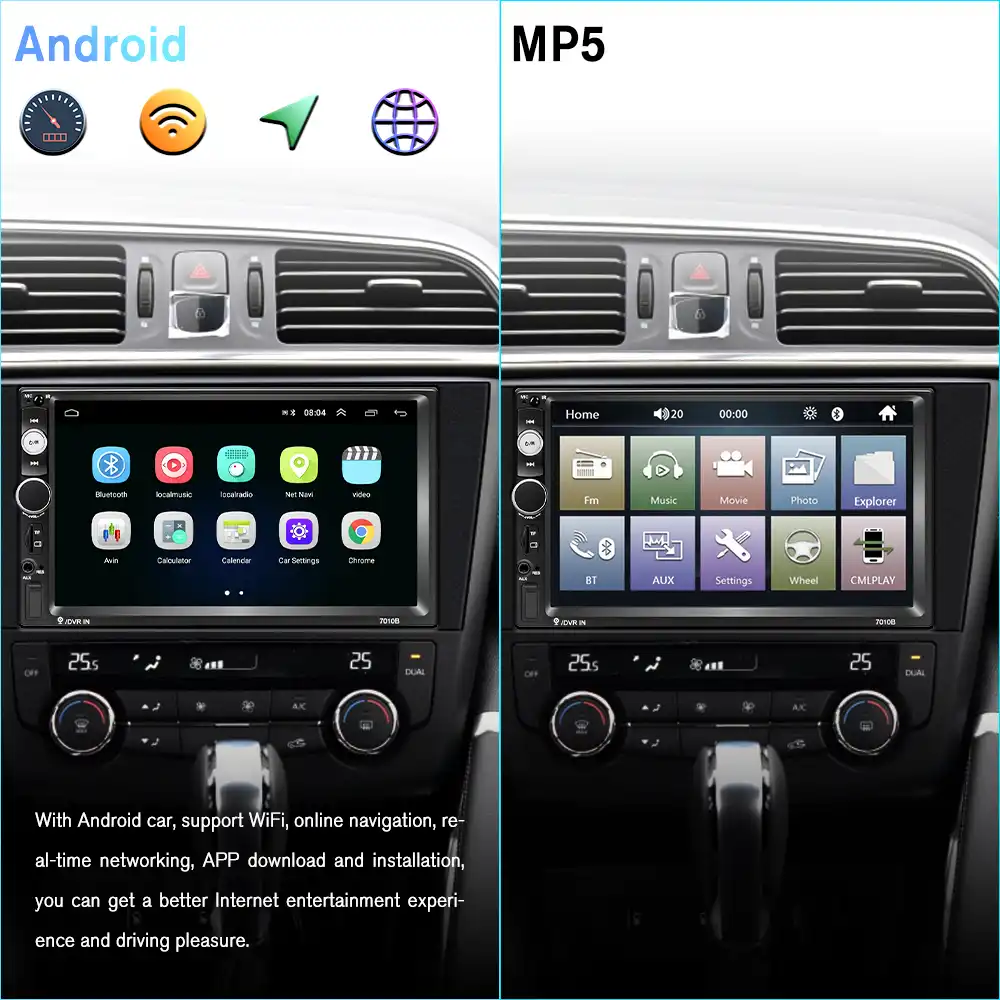 PLZ MP-800 Car Entertainment Multimedia System 7 Inch Double Din HD Touchscreen Monitor Car Stereo MP5 Player Bluetooth Car Radio Receiver Supports Rear Front View Camera MP3 USB AUX 41 out of 5 stars 2558. Motorcycles Directly from China SuppliersPodofo 2din Car Radio Android multimedia player Autoradio 2 Din 7 Touch screen GPS WIFI Bluetooth FM auto audio player stereo Enjoy Free Shipping Worldwide. Up to 7 cash back GPS Navigation Car DVD Player in Dash Car Radio Bluetooth Double Din Car Stereo 62 inch Capacititive Touchscreen Video Auto Multimedia 2 Din Head Unit MP3 MP4 Autoradio Car Logo USB SD.